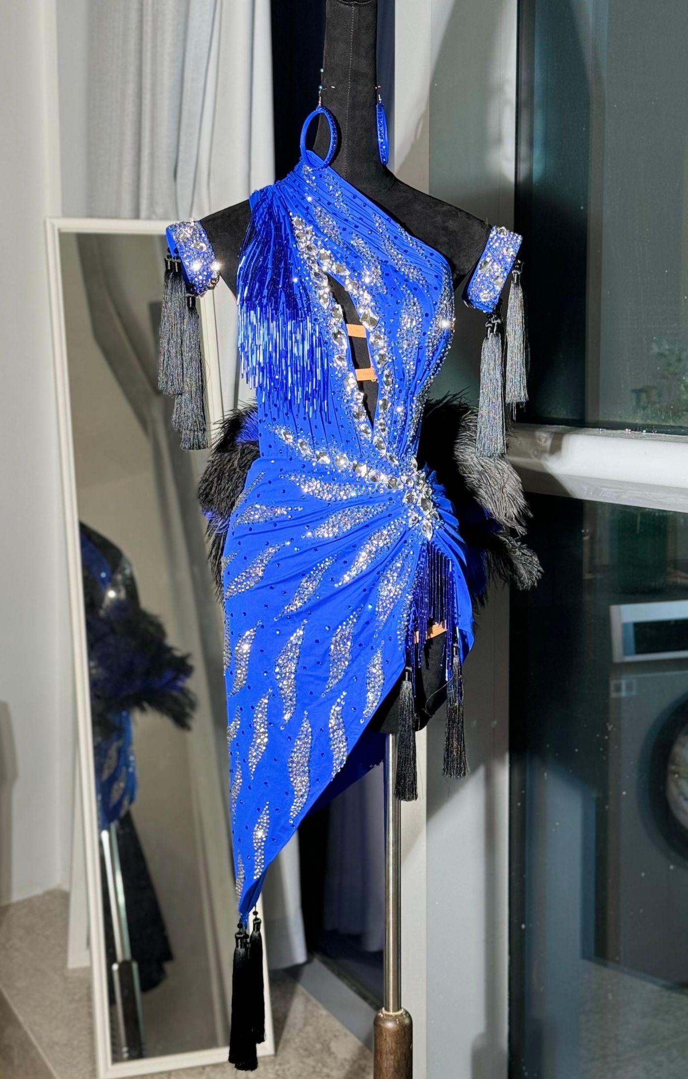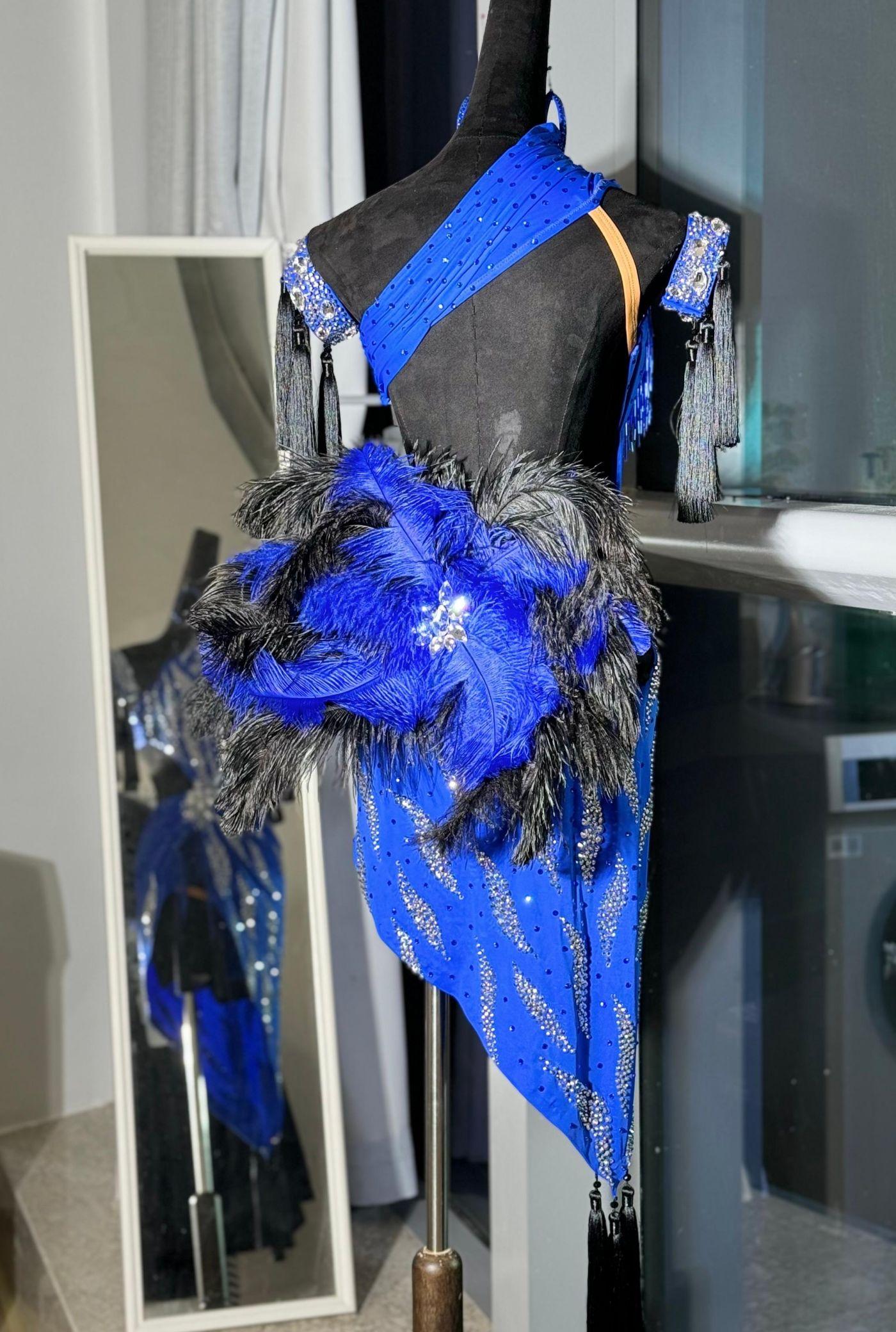 The ostrich feathers added high on the hips are voluminous but dance lightly, making them ideal for dancers who want to leave an active impression.